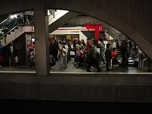 ![]() Barcelona Metro line 1 and Rodalies de Catalunya station during rush hour | |||||||||||||||||||||||||||||||||||||||||||||||||||||||||||||||||||||||||||||||||