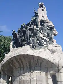 The monument was built in Plaça de la Universitat between 1904 and 1910, commissioned by mayor Lluís Domènech i Montaner. The monument was dismantled in 1940 by the Francoist State and moved to Plaça de Tetuan in 1985.[2]