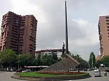 Being scarcely more than a roundabout, its center is occupied since 1990 by a 30-metre high metal monument made by Josep Viladomat in the 1930s called La República, with the effigy of Francesc Pi i Margall. The monument was originally located in the much more famous intersection between Passeig de Gràcia and Avinguda Diagonal, which is nowadays still crowned by a Francoist monument.