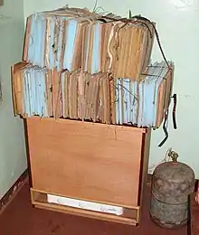 A plant press is a set of equipment used by botanists to flatten and dry field samples so that they can be easily stored. A professional plant press is made to the standard maximum size for biological specimens to be filed in a particular herbarium. A flower press is a similar device of no standard size that is used to make flat dried flowers for pressed flower craft.