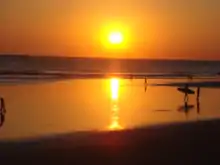Playa Grande (Spanish pronunciation: [ˈplaʝa ˈɣɾande], lit. "Big Beach"), also known as Salinas, is a beach community on the Pacific coast of Costa Rica just north of Tamarindo.[1] It is located inside the canton of Santa Cruz in Guanacaste Province. Playa Grande has been part of the Parque Nacional Marino Las Baulas (Las Baulas Marine National Park) since 1990.[2] There are palm trees and vegetation around the beach, which stretches for about 4.5 kilometers (2.8 miles). It is part of the Las Baulas National Marine Park, which was established to protect the nesting grounds of endangered leatherback turtles. Playa Grande is one of the major nesting sites for these turtles, and visitors can witness the nesting and hatching process during the nesting season, which typically occurs from October to March. The main attraction of Playa Grande is its surf breaks. The beach has consistent waves.[3] Playa Grande is an ideal destination for nature lovers, with diverse ecosystems surrounding it. Beyond the beach, you can explore the nearby mangrove forests, take boat tours along the estuaries, or venture into the neighboring national parks, such as Rincon de la Vieja or Santa Rosa, which offer hiking trails, wildlife spotting opportunities, and breathtaking landscapes.[4]