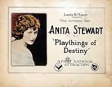 Playthings of Destiny is a 1921 American romance film directed by Edwin Carewe and written by Anthony Paul Kelly. The film stars Anita Stewart, Herbert Rawlinson, Walter McGrail, Grace Morse, William V. Mong, and Richard Headrick. The film was released in May 1921, by Associated First National Pictures.[1][2][3]