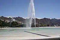 Plaza de España (lit. Spain Square), is the largest square in the city of Santa Cruz de Tenerife and the Canary Islands (Spain). The square is located in the centre of town, 1.4 km north of the Auditorio de Tenerife. This square is considered one of the "main squares" of the island of Tenerife, together with the Plaza del Cristo de La Laguna in San Cristóbal de La Laguna and the Plaza de la Patrona de Canarias in Candelaria. It hosts an artificial lake fountain, a work of Swiss architects Herzog & de Meuron.