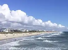 The company acquired the rights to build a small railroad across the island which roughly followed what today is Harper Avenue. They built hotels and restaurants near the beach along with various other amenities to attract visitors. This included a pavilion on the ocean that "was designed by Henry Bonitz, who also designed the famous Lumina at Wrightsville Beach."[19] That first year, thousands of people took Harper's steamship ride down the Cape Fear River to visit his beachside attraction. Carolina Beach grew steadily as a summertime vacation destination over the next several decades. By the 1940s a small year-round population began to take hold.[16] Despite devastating fires and hurricanes, the town continued to thrive, with new businesses, dance pavilions and a boardwalk. After a brief period of decline in the late twentieth century, Carolina beach is now flourishing with the addition of a refurbished boardwalk as well as many new restaurants, businesses and beachfront hotels.
