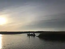 The "island" started out as the lower tip of the Federal Point Peninsula which was originally bounded in the south at a break in the barrier islands called New Inlet. This inlet was "new" in that it opened up as a result of a massive storm in September, 1761.[4] For the decades that followed, New Inlet was actually the preferred entrance to the Cape Fear River for ships bound for the port of Wilmington, as it offered a deeper, shorter, and less treacherous route compared to the Bald Head/Old Inlet Channel, at the mouth of the Cape Fear. During the Civil War, blockade runners routinely took the New Inlet route, which led to the building of Confederate Fort Fisher at this location. There are still dozens of sunken blockade runners in this region of North Carolina.
