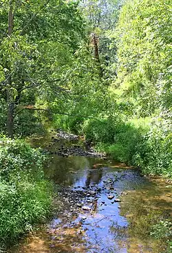 Agriculture was also being done in the valley of Plum Creek by the early 1800s.[7][8] For instance, Henry Yoxtheimer, Sr., an early pioneer, farmed in the valley.[8] Also, the 58-acre William Miller homestead historically existed at the headwaters of the creek. Parts of this valley were "fertile" and "well-cultivated" in the 19th and 20th centuries.[7][8]