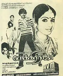 Pokkiri Raja (transl. Rogue King) is a 1982 Indian Tamil-language action comedy film directed by S. P. Muthuraman and written by Panchu Arunachalam. A remake of the Telugu film Chuttalunnaru Jagratha (1980), it stars Rajinikanth, Sridevi and Radhika. The film revolves around a man who was framed for murder, and a lookalike who aids him in finding the true killers. It was released on 14 January 1982 and became a commercial success, running for over 100 days in theatres.