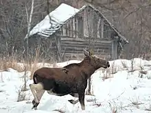 The reserve hosts many rare and endangered species, which thrive there thanks to the virtual absence of humans. They include European bison, Przewalski horse, moose, brown bear, golden eagle, and white-tailed eagle. It is home to the world's largest population of the European pond turtle. According to PSRER administration, there are 7 reptile, 11 amphibian, 46 mammal, 213 bird and 25 fish species. Of those, 70 are listed in the International Red Book and the Red Book of the Republic of Belarus. Flora includes 1251 registered plants, which is more than two-thirds of the flora of the country, and 18 of the plant species are listed in the Red Book.[3] It was found that voles have higher rates of cataracts, useful populations of bacteria on the wings of birds in the zone are lower, partial albinism is common among barn swallows, cuckoos have become less common. Serious animal mutations, though, happened only right after the accident.[4]