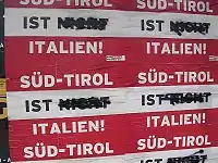 - ↑ Südtiroler Heimatbund (2008). "Meinungsumfrage zur Selbstbestimmung: Nur 55% der Italiener würden definitiv für Italien wählen". apollis Institute of Social Research and Opinion Polling. Retrieved 22 February 2009.