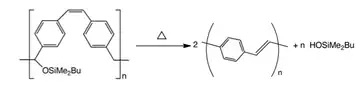 A modification of the ROMP route to PPV used a silyl-substituted paracyclophane derivative. Transformation into PPV could be achieved by elimination of the silyloxy group followed by thermal treatment or treating the precursor polymer with acid. The advantage of this method is that polymers and block copolymers of well-defined molecular weight can be easily prepared.