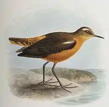 - 1 2 3 De Pietri, V.L.; Worthy, T.H.; Scofield, R.P.; Cole, T.L.; Wood, J.R.; Mitchell, K.J.; Cibois, A.; Jansen, J.J.F.J.; Cooper, A.J.; Feng, S.; Chen, W.; Tennyson, A.J.; Wragg, G.M. (2021). "A new extinct species of Polynesian sandpiper (Charadriiformes: Scolopacidae: Prosobonia) from Henderson Island, Pitcairn Group, and the phylogenetic relationships of Prosobonia". Zoological Journal of the Linnean Society. 192 (4): 1045–1070. doi:10.1093/zoolinnean/zlaa115.