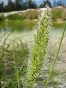 Some are introduced species established outside their native ranges.[5] Some of those are considered invasive species and noxious weeds, most notably Polypogon monspeliensis, the annual beard grass.