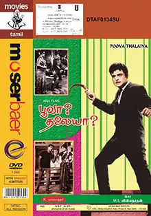 Poova Thalaiya (transl. Heads or Tails?) is a 1969 Indian Tamil-language comedy film written and directed by K. Balachander. The film stars Gemini Ganesh, Jaishankar, Nagesh, S. Varalakshmi, Rajasree and Vennira Aadai Nirmala. It was released on 10 May 1969. The film was remade in Telugu as Bomma Borusa, in Malayalam as Balapareekshanam and in Kannada as Balondhu Uyyale.[1] It was also an influence on Kandha Kadamba Kathir Vela.[2]