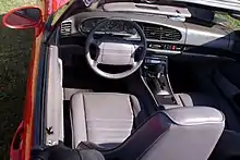 While the exterior of the car was rounded and smoothed, the interior was largely unchanged and mostly shared with the preceding 944 S2 with the exception of switches and control knobs.[5] The 968 also featured numerous small equipment and detail upgrades from the 944, including a Fuba roof-mounted antenna, updated single lens tail lamps, "Cup" style 16-inch alloy wheels, a wider selection of interior and exterior colours, a slightly updated "B" pillar and rear quarter window to accommodate adhesive installation to replace the older rubber gasket installation.