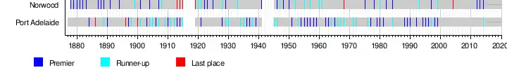 In 1960, Norwood would bring Port Adelaide's own run of six premierships to an end, defeating them by 27 points in the preliminary final. As of 2017, the two clubs are the only clubs in any of the elite Australian Rules Football leagues (the SANFL, WAFL, VFL, and VFL/AFL) to win six successive premierships.