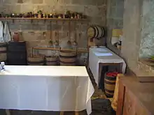 On the first floor is the upper hall and the captain's chamber, used in the 16th century as a living and working space by the castle's commander, and converted into a dining room and a bedroom in the 19th century.[48] On the opposite side to the captain's private chamber are two other bedrooms, possibly originally for the use of the castle's lieutenant.[49]