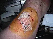 ![]() Povidone-iodine applied to an abrasion using a cotton swab. | |
