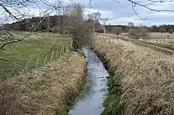 The Pow starts at Methven Moss and runs in a south-westerly direction for 9 miles (14 km) until it meets the River Earn near to Innerpeffray, about 2.5 miles (4.0 km) to the south-east of Crieff.[1] The Pow's drainage basin is 2,047 acres (828 ha) which includes 79 residential properties, 21 agricultural properties and 2 commercial properties.[1][2] It has ten major tributaries which total approximately 4.7 miles (7.6 km) of watercourse.[1] The Pow's purpose is disputed with some claiming it to be for the drainage of groundwater and others that it is a flood prevention measure.[2]