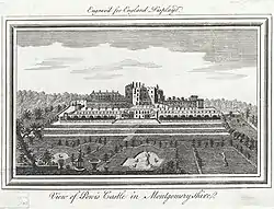 ![]() Powis Castle from the south, showing the distinctive terraced gardens | |