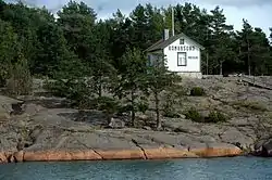 In 1906, a unit of 750 Russian soldiers was sent to Prästö, although the Åland Islands had been demilitarized since the 1856 Treaty of Paris. The islands were used for smuggling weapons and illegal publications to the Socialist revolutionaries in Russia. The smuggling route ran from Stockholm to Åland and then via Southern Finland to Saint Petersburg. In order to chase the smugglers, the Russians built a telegraph line from Åland to the Finnish mainland. One of the telegraph stations was built in Prästö.[2] During the 1918 Finnish Civil War Invasion of Åland, the Prästö telegraph station was occupied by Whites who had landed the island from Finland.[3] Today the 1913 built telegraph station works as museum which is open during the tourist season.[4]