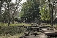 There is little historical data about Preah Khan of Kompong Svay. French scholars argued it had been founded in the 11th century, probably by Suryavarman I.[2]: 136 [3]: 95 Evidence from sediment analysis suggests that the site was fully abandoned during the late 14th to 15th century, with maintenance to temples and infrastructure ceasing around the mid-14th century.[4] It is notable for its use as a royal residence during the kingdom of Suryavarman II, and served as a military outpost for Jayavarman VII during conflicts with the Cham in the late 12th century.[1][5]