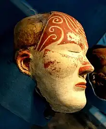 In the ground beneath the kurgan was buried one or (very often) more tombs. The corpse lay either in a wooden chamber or a stone cist. The grave goods found along with them indicate that wooden chambers were reserved for people of higher status. While in burials from the Bronze Age the corpses were usually in a crouching position, in the Iron Age they were usually laid on their backs. Evidence for the handling of the dead are only known from Altai and Tuva, were some bodies are preserved as ice mummies by the permafrost, making detailed analysis possible. In these locations, the guts and muscles were removed before burial and the resulting holes were stitched closed with tendons and horse hair. It is uncertain whether damage to the skull reflects injuries that occurred before death or were made after death. Ritual trepanation cannot be assumed. After the guts were removed, distinguished corpses were tattooed and embalmed. These traditions are described also by the Greek historian Herodotus, who included material on the Scythians north of the Black Sea in his 5th century BC work, and is the main Greek source on the Scythians. Even his report of cannabis inhalation in small groups during the funeral have been corroborated by finds from the Pazyryk burials.[22] This corroboration not only affirms the accuracy of Herodotus, but also indicates the cultural homogeneity of the steppe peoples of west Siberia, Central Asia and the region north of the Black Sea. The great kurgans of the Xiongnu present a rather different picture, however. There the burial chambers are deeper and were accessed by a ramp.[23]
