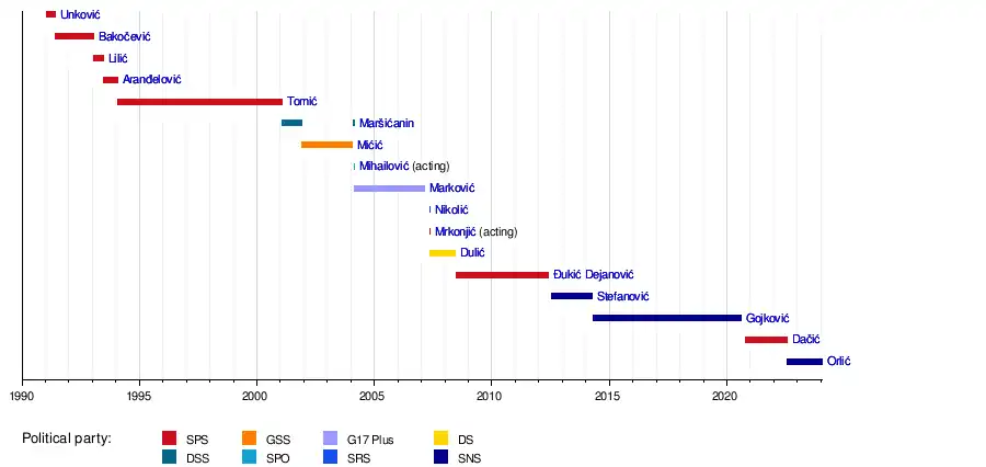 11 January 1991 | 5 June 1991 | 145 days | Socialist Party of Serbia | 1st (1991–93) |
