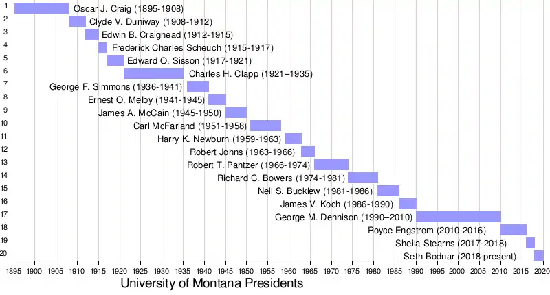 - ↑ "University of Montana's Past Presidents". Archived from the original on 2010-12-29.