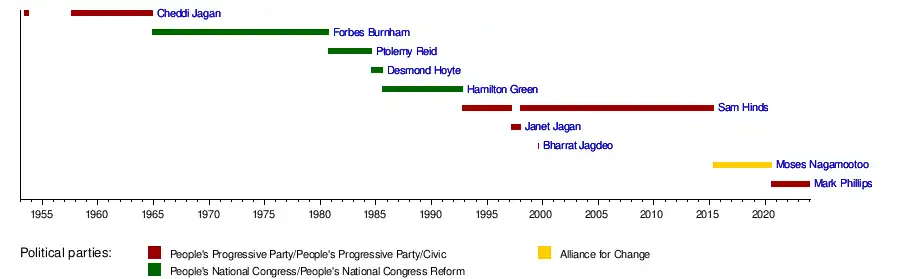 23 February 1970 | 6 October 1980 | 10 years, 226 days | People's National Congress | Luckhoo Chung |