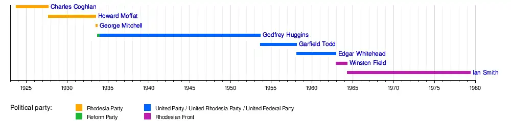 Ian SmithWinston FieldEdgar WhiteheadGarfield ToddGodfrey HugginsGeorge Mitchell (Rhodesian politician)Howard Unwin MoffatCharles Coghlan (politician)