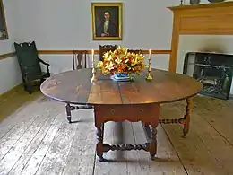 The house is furnished with much of its original furniture, including a settle bench that folds out into a bed. A table that Joseph bought from the old Chester Courthouse, the largest of its kind in the United States, still stands in the center hall of the house.[9] The name "Primitive Hall" was first recorded about 1846 but is believed to be much older.