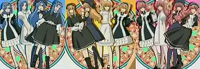 ![]() Cast of Princess Princess, from left to right, Mikoto, Toru and Yuujirou | |