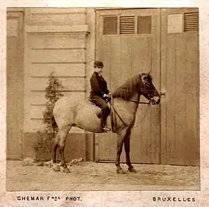 From 1874, Stéphanie (who until then had a nanny, the Viennese Antoinette Polsterer) was placed under the direction of her sister Louise's governess, Mademoiselle Legrand. Stephanie writes: "My education began at the age of ten; I immediately understood that from that moment books and notebooks would take the place of my toys, that a more orderly life would begin".[12] Stéphanie benefitted from schooling by teachers who provided her with various courses: French, English, German, Dutch and Hungarian for languages, while mathematics lessons, horsemanship, history, history of art, religion, botany, and rhetoric were also taught.[13] However, the level of education of the princesses was not very high: "The programs lacked scope. In the severe decor of the study room, it was usually too rudimentary that we applied ourselves to history, geography, literature, mathematics; a preponderant place being left to the decorative arts: painting, drawing, music, as well as needlework".[14]