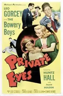 Private Eyes is a 1953 comedy film starring The Bowery Boys.[1] The film was released on December 6, 1953, by Allied Artists and is the thirty-second film in the series.
