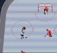 An additional level of sponsorship from the National Hockey League Players Association gave it an additional touch of legitimacy. There is also a practice and regular season mode on the Super Nintendo Entertainment System version of the game.[3] All the offensive and defensive plays are done as realistic as possible. Major and minor penalties are called in addition to offside and icing. Game misconducts can be called at random by the referee; not even players with low levels of aggression like Wayne Gretzky and Eric Lindros can escape a game misconduct penalty.[4] Regular season and exhibition games can end in a tie; bringing up the same end of game screen as if the player's team lost.[5]