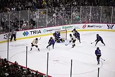 The rules of the PWHL closely follow the standards of ice hockey rules set by the National Hockey League and the International Ice Hockey Federation (IIHF), with some notable innovations.[40] Ahead of its inaugural season, the PWHL held an evaluation camp with all of its teams, which included a series of exhibition matches in which the league experimented with different rules.[21] When the league finalized its rule book, it included a "jailbreak" rule, whereby a team terminates a minor penalty against by scoring a short-handed goal.[41] Also new to professional hockey is the PWHL's approach to the shootout—any player is eligible to shoot at any time, including taking multiple attempts, in the best-of-five shootout.[40] In a break from the NHL points system, the PWHL opted to adopt a 3-2-1-0 points system, whereby a team is awarded 3 points for a regulation win, 2 for an overtime or shootout win, and 1 for an overtime or shootout loss.[41]