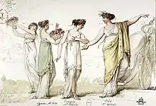 Paisiello arrived in Paris in 1802. Here the Opéra proposed he should write a setting of Guillard's reworking of Proserpine, a libretto by Philippe Quinault originally set by Jean-Baptiste Lully and premiered in 1680. The fashion for such reworkings had emerged in the late 18th century. Examples include Gluck's Armide (1777) and J.C. Bach's Amadis de Gaule (1779). Lully and Quinault were considered the founders of the tragédie lyrique, the genre which was the heart of serious French opera, but by the Classical period Lully's music seemed dated. Reusing Quinault's libretti was a way of asserting the continuity of the national musical tradition and ensuring foreign composers, such as Gluck and Paisiello, were tied into it.[2] Guillard, following the fashionable model of Metastasian drama, reduced Quinault's libretto from five to three acts,[3] concentrating the action on the main plot, the god Pluto's abduction of Proserpina.[4]