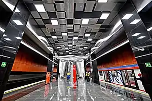 Prospekt Vernadskogo (Russian: Проспект Вернадского) is a station on the Bolshaya Koltsevaya line of the Moscow Metro. It was opened on 7 December 2021 as part of the section between Mnyovniki and Kakhovskaya. Passengers can transfer to Prospekt Vernadskogo.[1]