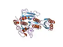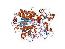 7. Groves MR, Taylor MA, Scott M, Cummings NJ, Pickersgill RW, Jenkins JA (October 1996). "The prosequence of procaricain forms an alpha-helical domain that prevents access to the substrate-binding cleft". Structure. 4 (10): 1193–203. doi:10.1016/s0969-2126(96)00127-x. PMID 8939744.