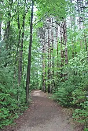 Proud Lake State Recreation Area is a state-managed public park and recreation area located in Commerce Township, Oakland County, Michigan, near Wixom. It is under the jurisdiction of the Michigan Department of Natural Resources. The recreation area has a total area of 3,030 acres (12.3 km2) and offers various outdoor activities including 20 miles (32 km) of hiking trails (9 miles of which are open to horses and mountain bikes), cross-country skiing, fishing in the Huron River, hunting (in limited areas), canoeing, and picnicking. A campground has 130 campsites and a 24-person cabin for rent.