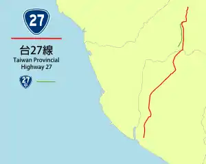 Provincial Highway 27 is a Taiwanese highway that starts from Liouguei, Kaohsiung City and ends in Xinyuan, Pingtung, Pingtung County. The highway connects the inland townships in Kaohsiung and Pingtung to the southern coasts of Taiwan. The route length is 79.174 kilometres (49.196 mi) .[1]