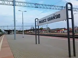 Pruszcz Gdański railway station is a railway station serving the town of Pruszcz Gdański, in the Pomeranian Voivodeship, Poland. The station opened in 1852 and is located on the Warsaw–Gdańsk railway, Pruszcz Gdański–Gdańsk Port Północny railway and Pruszcz Gdański–Łeba railway. The train services are operated by Przewozy Regionalne.