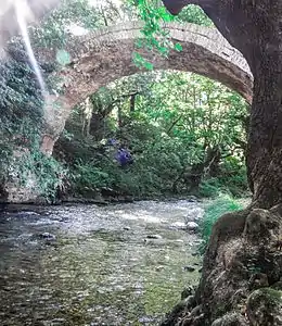 Erymanthos River and the old arched stone bridge in Tripotama village, Achaia-Ilia borders.