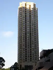 Bauhinia Garden (Chinese: 寶盈花園) is a HOS and PSPS estate, located near Tseung Kwan O Plaza, The Grandiose,[6][7] Tseung Kwan O station. It was jointly developed by the Hong Kong Housing Authority and Shui On Group.[8][9] It consists of 8 residential blocks built on the reclaimed land and completed in 2001.[10] In the 1990s, it suffered serious unusual ground settlement when Tseung Kwan O line was being constructed.