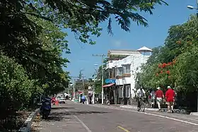 Puerto Ayora has the best developed infrastructure in the archipelago. The larger of the two Galápagos banks, Banco del Pacifico, is located in Puerto Ayora. The walkable downtown area of Puerto Ayora is a small strip of hotels, restaurants, tour companies, gift shops, clothing stores, marine stores, tourist shops and night clubs. The main Avenue is named Avenida Charles Darwin and begins on the main dock of Puerto Ayora and finishes at the Charles Darwin Research Station.[4] The Town Hall (Alcaldía) is on Avenida Charles Darwin as well. Puerto Ayora is the best place in Galápagos for communicating with the outside world via numerous cybercafes with Internet access or telephone offices.