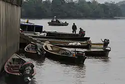 Puerto El Carmen de Putumayo is a town in Sucumbíos Province in Ecuador.[1] It also known as Puerto Carmen de Putumayo[3] and is the seat of canton of Putumayo. The town is located on the San Miguel River and also has an airstrip. With a population of 2,012 (2022 census) Puerto Putumayo as it is sometimes called in the town has nearly one fourth of the population of the Putumayo Canton and it is famous for being the easternmost city/town access by road. The national route E10 terminates here nearly 450 km from San Lorenzo, Esmeraldas. Even though it is the easternmost city/town reachable by road, the title as the easternmost town goes to the town of Nuevo Rocafuerte in neighbouring Orellana Province. This town is only reachable by boat similar to the cases in the amazonian towns of Neighbour Peru. It is also known to be in the same longitude as Tarapoto, Peru at 75W longitude.