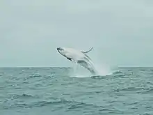 40 kilometres offshore is Isla de la Plata (named from its history as a pirate hideout, the Island of the Silver), also referred to as "The Poor Man's Galapagos."[2] There some species that also inhabit the Galapagos like the blue and red-footed booby, nazca booby, frigatebirds, albatross, pelican and other seabirds that are nesting in colonies can be found. The island is surrounded by coral reef and snorkeling is a popular activity. On the boat ride from Puerto Lopez to the island pods of dolphins can often be seen.