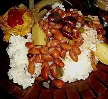Although Puerto Rican diets can vary greatly from day to day, there are some markedly similar patterns to daily meals. Dinners almost invariably include a meat, and rice and beans.[5]
