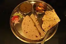 - Dry baked (Indian griddle), jowar ki roti, baajre ki roti and makki ki roti (these are also smeared with white butter)