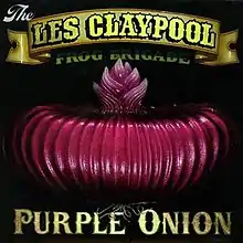 Purple Onion is the only studio album by The Les Claypool Frog Brigade, released on September 24, 2002. It followed two live releases by the band, and is the first release of the Frog Brigade's original compositions. While the Brigade regulars are consistent on much of the record such as Jay Lane, Eenor Wildeboar, Skerik and new percussionist Mike "Tree Frog" Dillon, many special guests appear on the album as well. Guests on multiple tracks include Ben Barnes and Sam Bass (then both from Deadweight). "D's Diner," a tribute to a Sebastopol, California restaurant, features sitar player Gabby La La in addition to the triple-bass onslaught of Claypool, Norwood Fisher (Fishbone) and Lonnie Marshall (Weapon of Choice). Warren Haynes (Allman Brothers Band) adds slide guitar on the "Buzzards of Green Hill" and Fish Fisher (Fishbone drummer) guests on "Whamola." "Whamola" was a live show staple named after the unique instrument Les employs—a one-string bass played with a drumstick. The song later appeared as a remix for the theme of South Park Season 10. "Barrington Hall" is a tribute to the UC Berkeley student housing known in the 1960s-1980s for counterculture. Purple Onion was released on vinyl for the first time on November 24, 2009.